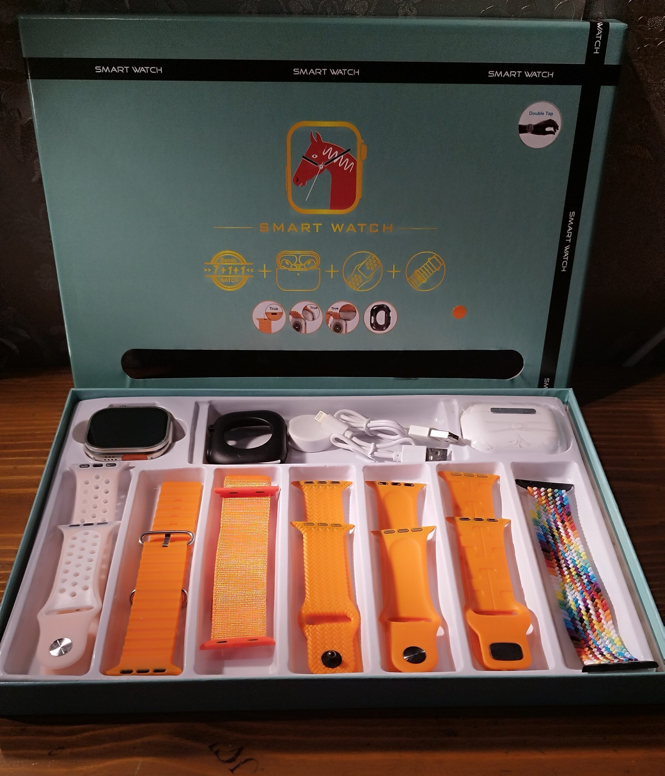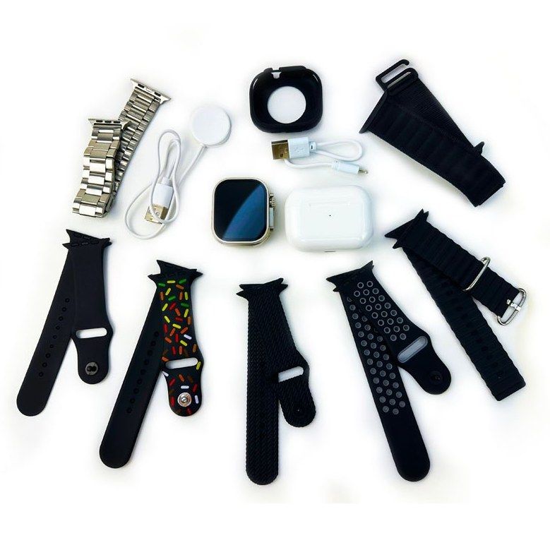 ساعت هوشمند ULTRA مدل 1+1+7 با طراحی آلومینیومی شیک، ایرپاد و ۷ بند متنوع عرضه میشود. این ساعت با امکاناتی مانند گامشمار، پایش خواب، سنجش ضربان قلب، کنترل کالری و سنجش اکسیژن خون، انتخابی ایدهآل برای ورزشکاران و کاربران حرفهای است. با این ساعت تجربهای هوشمند، زیبا و کاربردی خواهید داشت.