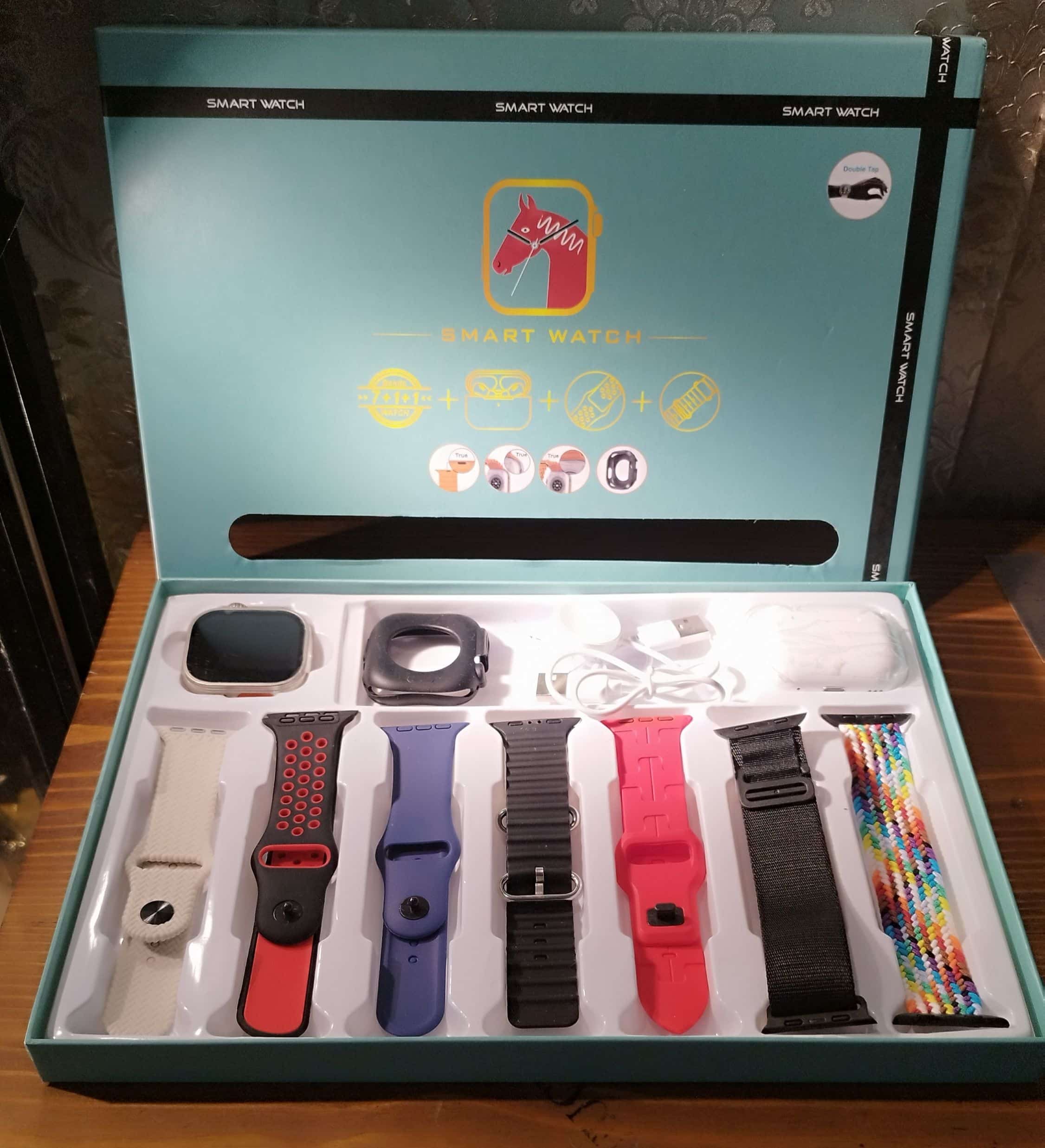 ساعت هوشمند ULTRA مدل 1+1+7 با طراحی آلومینیومی شیک، ایرپاد و ۷ بند متنوع عرضه میشود. این ساعت با امکاناتی مانند گامشمار، پایش خواب، سنجش ضربان قلب، کنترل کالری و سنجش اکسیژن خون، انتخابی ایدهآل برای ورزشکاران و کاربران حرفهای است. با این ساعت تجربهای هوشمند، زیبا و کاربردی خواهید داشت.